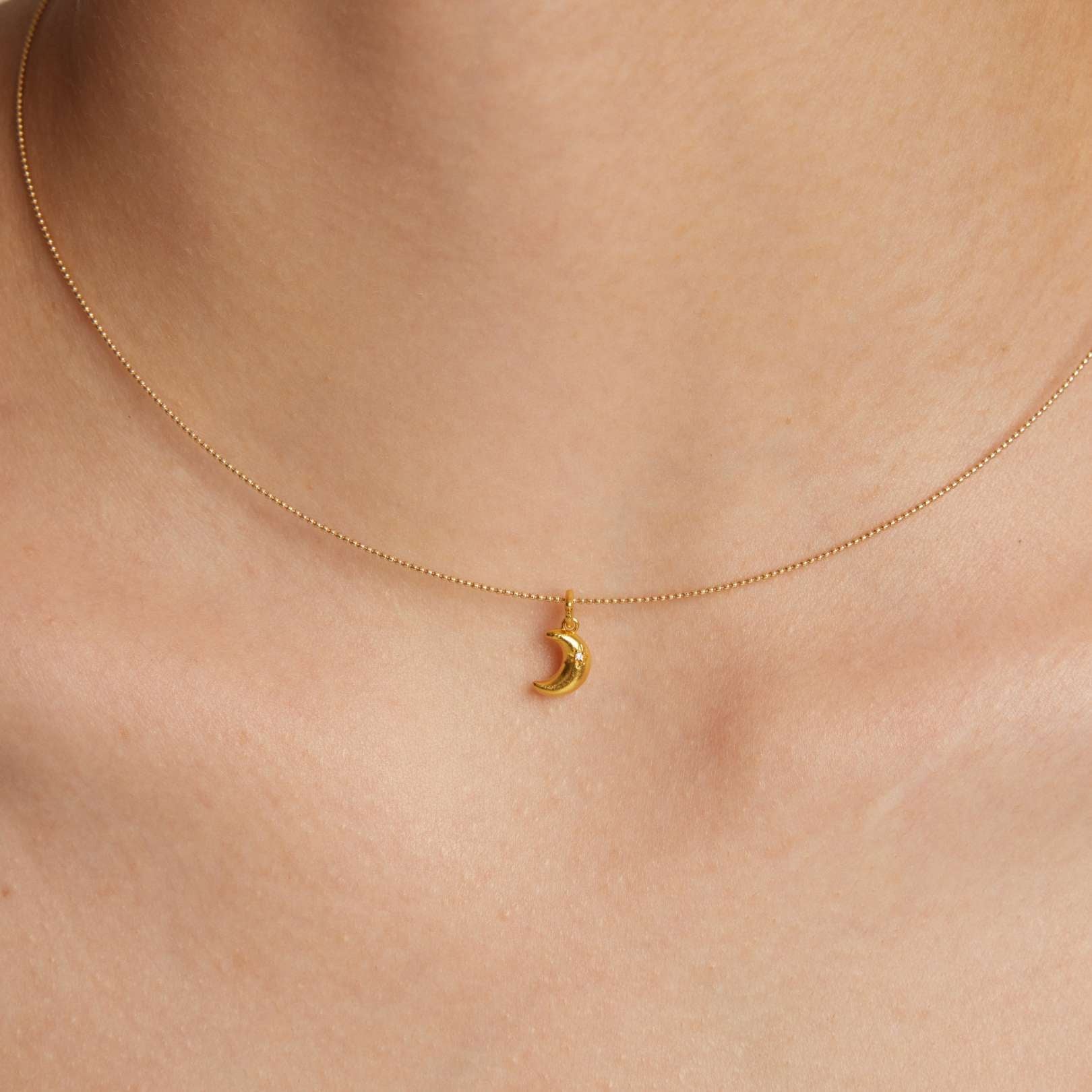 The charm features a meticulously crafted crescent moon, symbolizing growth and transformation. Its delicate curves and exquisite detailing make it a timeless piece suitable for any occasion.