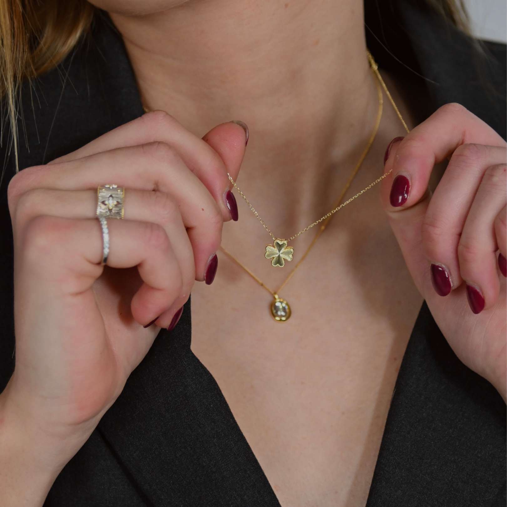 Add a touch of elegance and good fortune to your collection with the Hana necklace. The four-leaf clover pendant symbolizes luck, prosperity, and positive energy. Wear a symbol of good fortune and sophistication with the Clover Gold Necklace—where luck and luxury meet in perfect harmony.