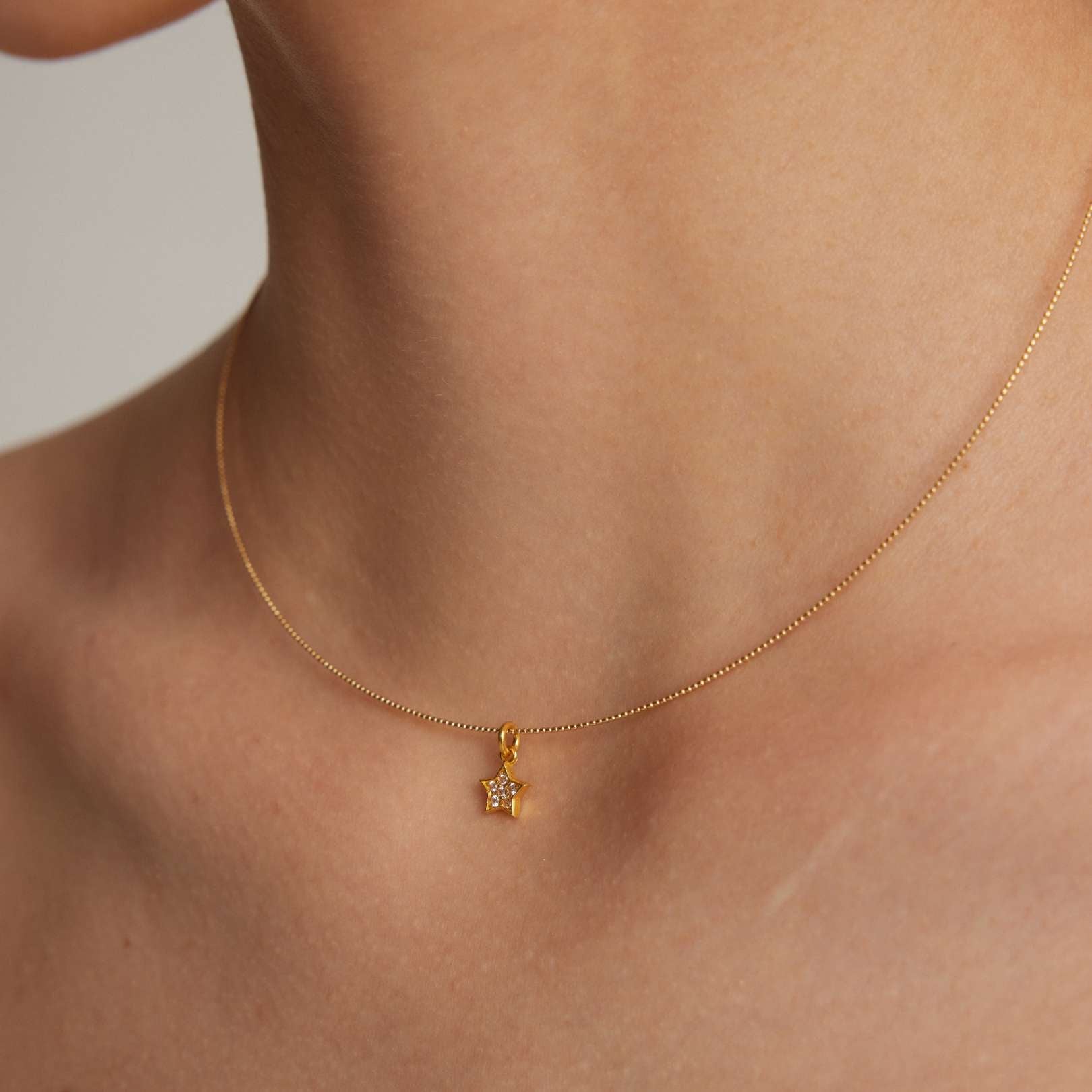 Illuminate your style with our exquisite Alya charm, a timeless piece can be worn alone or together with the other charms. Crafted with meticulous attention to detail, this necklace features a delicate star-shaped pendant that sparkles with every movement.