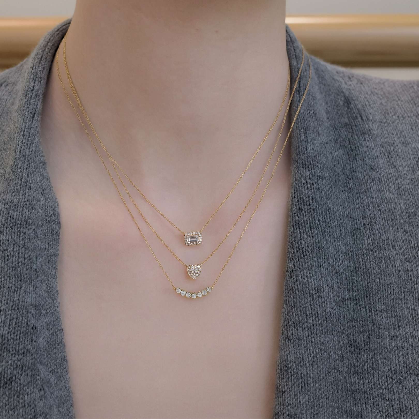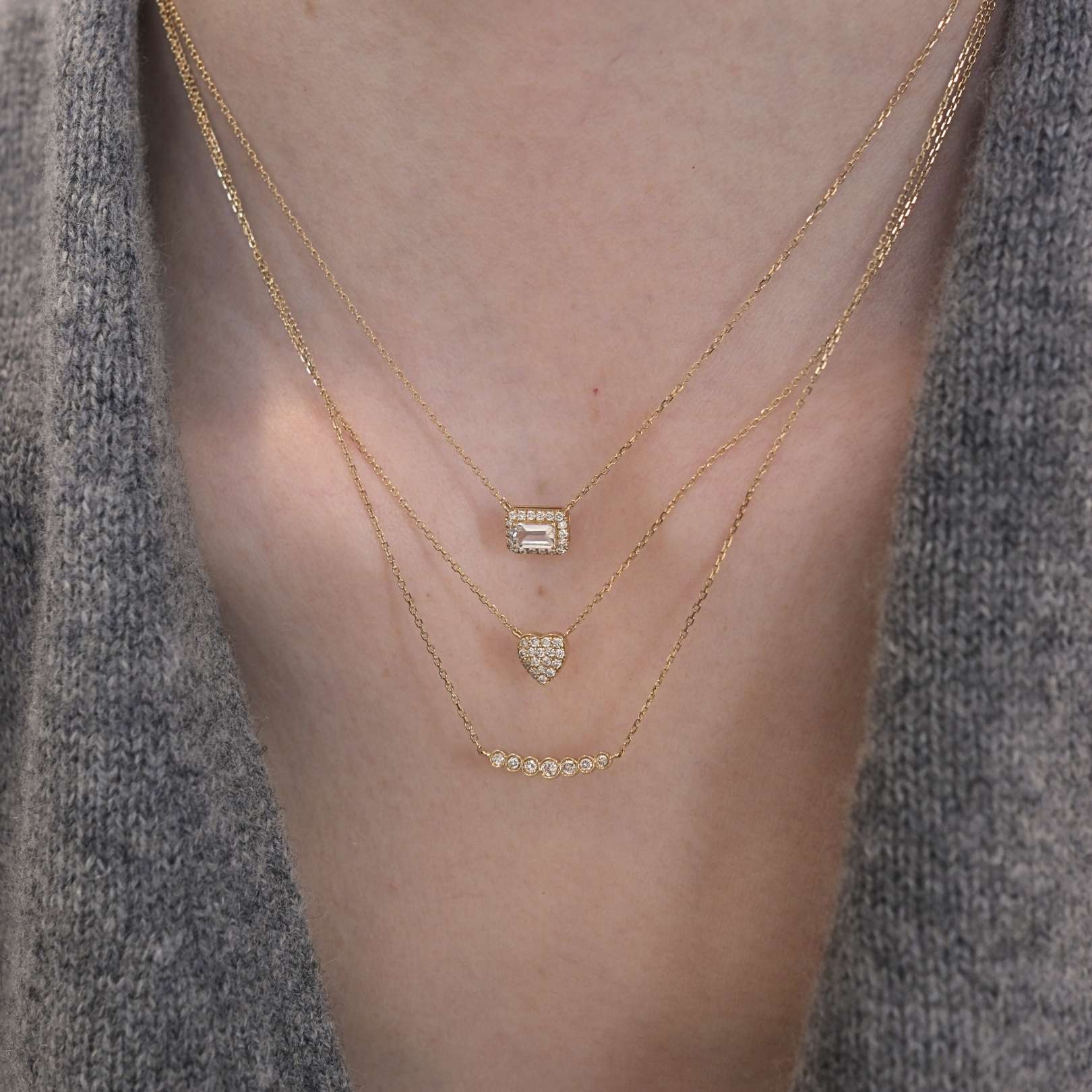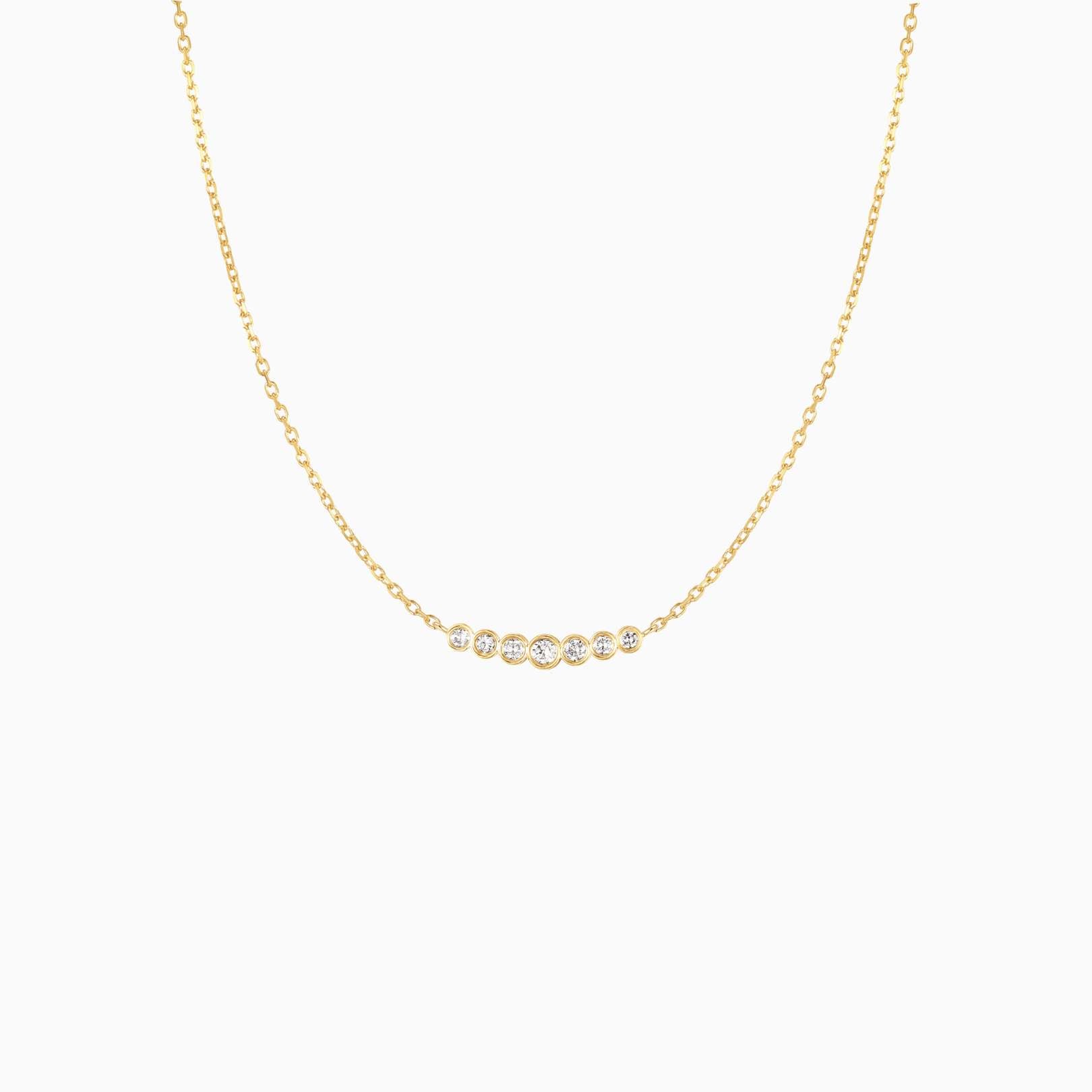Elegant and minimal, this 18k gold bar pendant showcases a refined row of round-cut gemstones, each nestled in a smooth bezel setting that enhances their brilliance. Crafted from solid 18k gold, this pendant embodies a sleek and contemporary aesthetic with a touch of timeless luxury.
