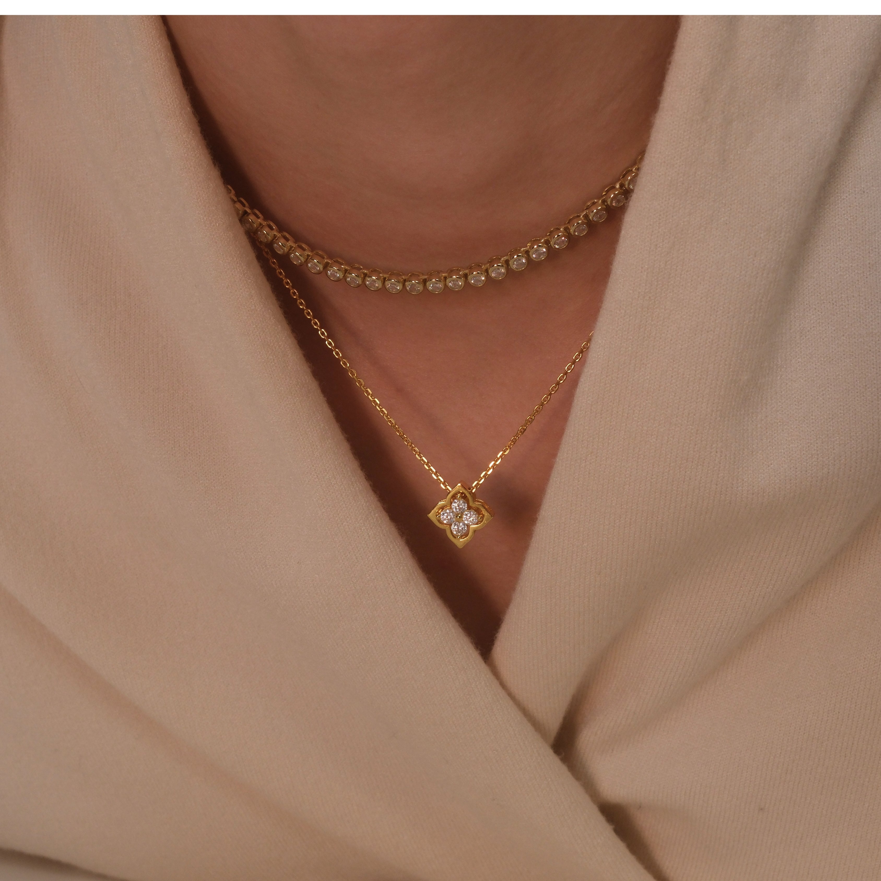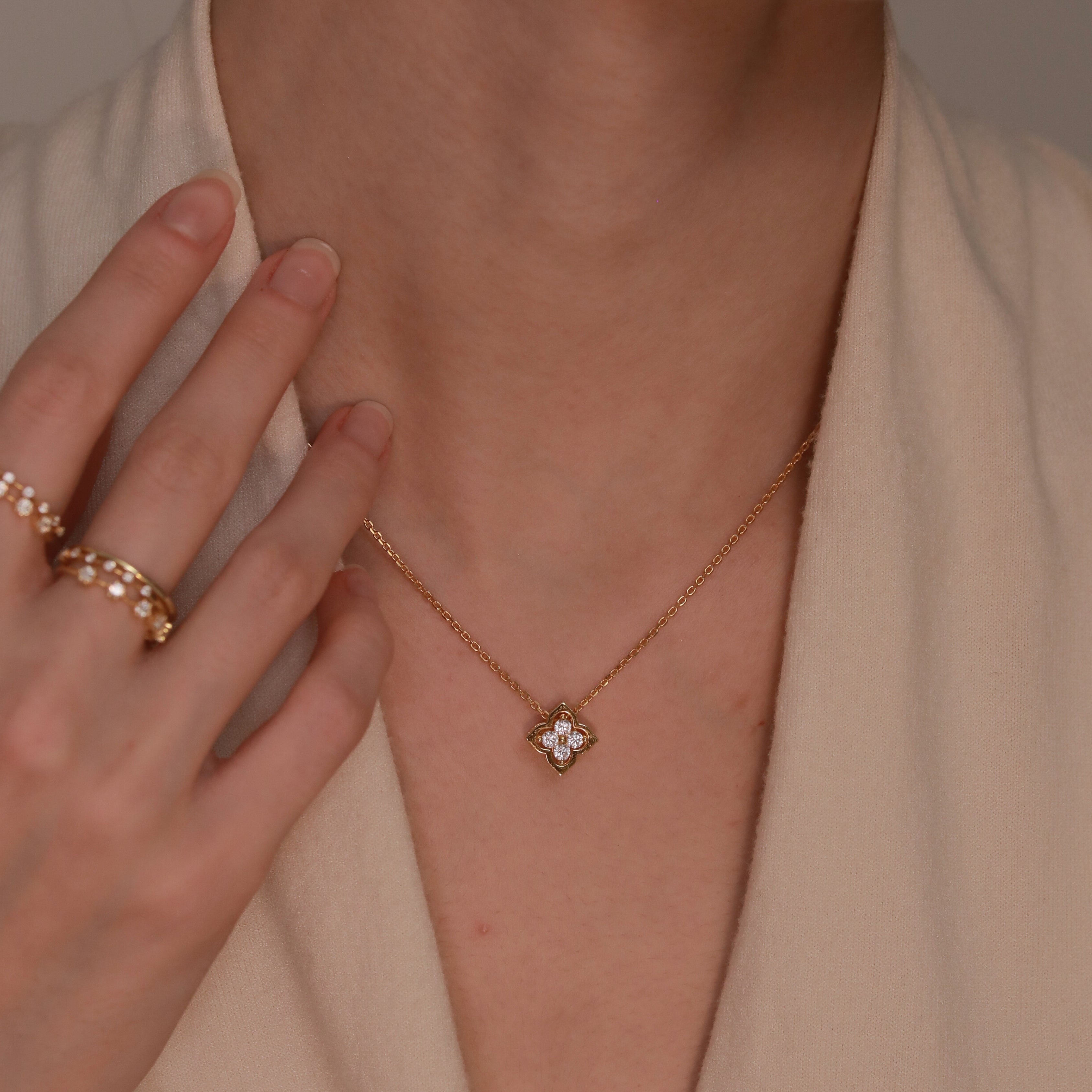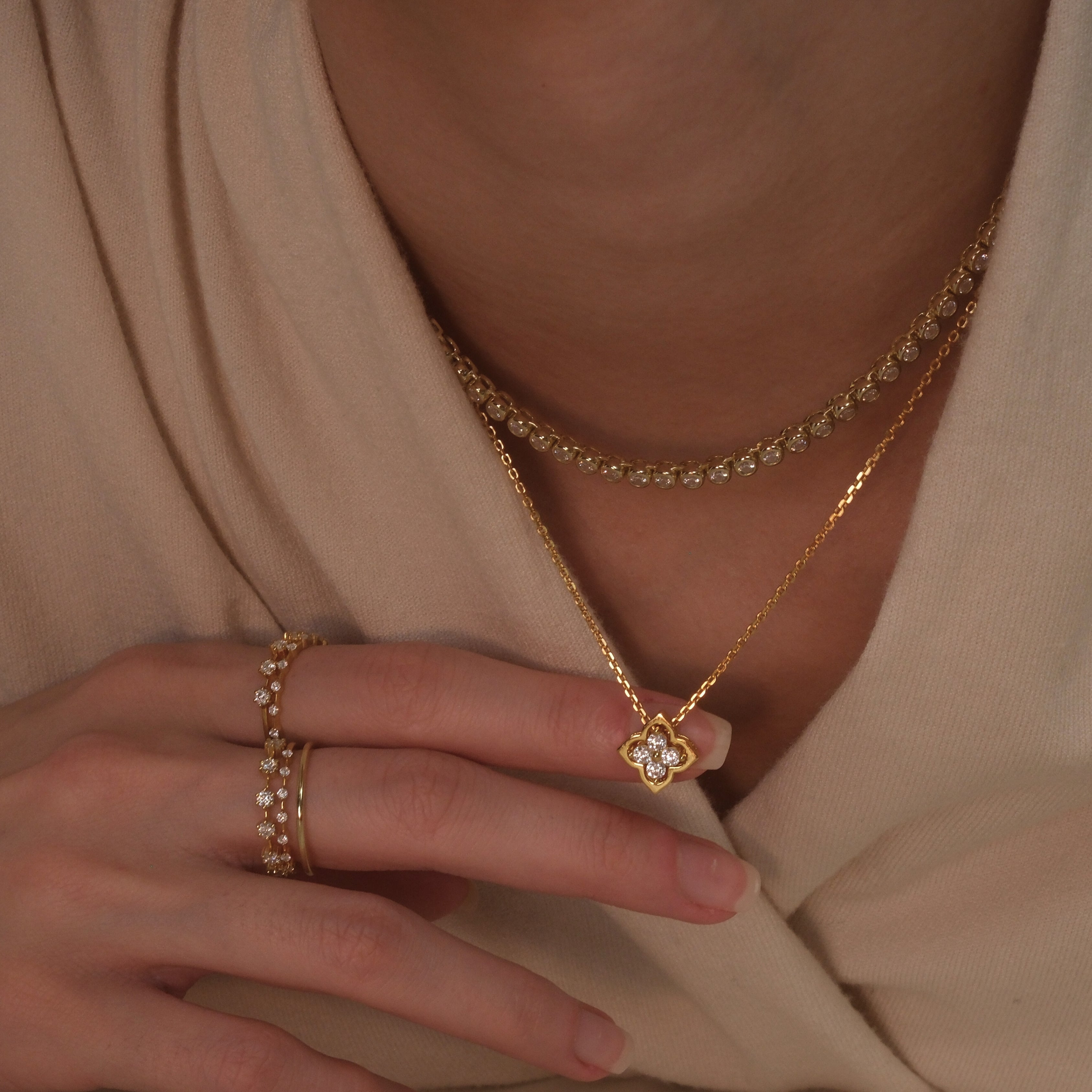 Refined and versatile, the Muse Necklace features a gold-toned frame encasing a pavé-set surface of shimmering stones. With its detachable design, it can be worn in four different ways — frame only, stone piece only, combined together, or layered apart for a personalized look.