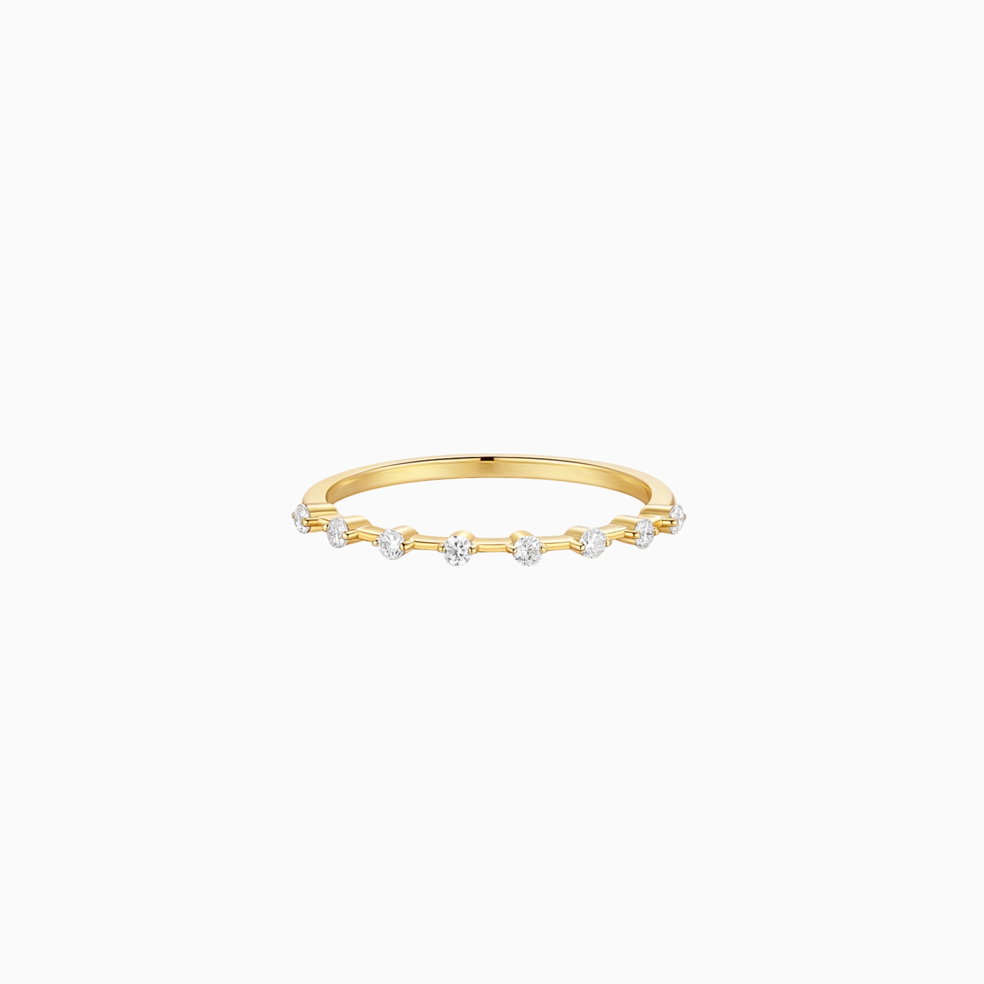 Delicate and luminous, this ring features a slender gold band adorned with petite round-cut stones that sparkle with every movement. The refined setting enhances each stone while maintaining a sleek and modern profile.