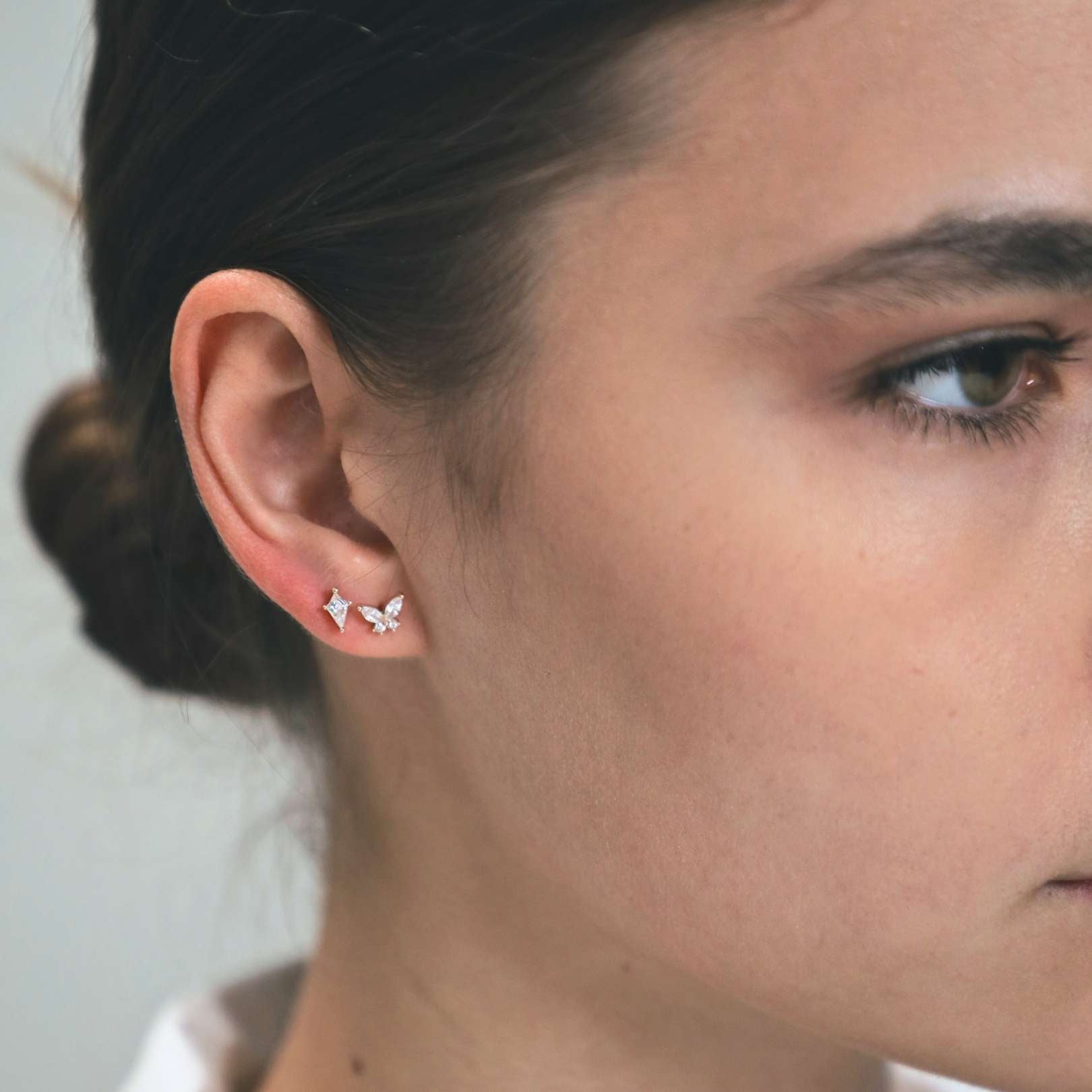 Tiny, and playful. This butterfly gold studs are perfect for your first piercing or stacking up with your faves. Light enough for all-day wear and chic enough to show off — they're the little earrings that do it all.