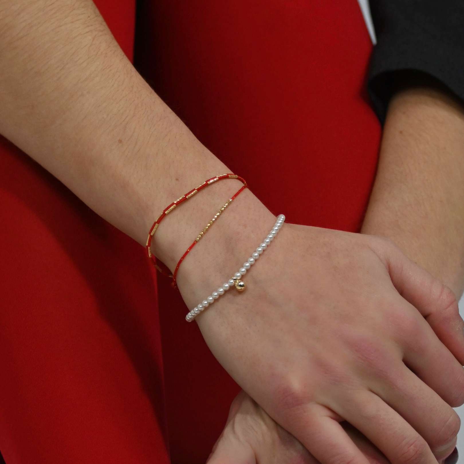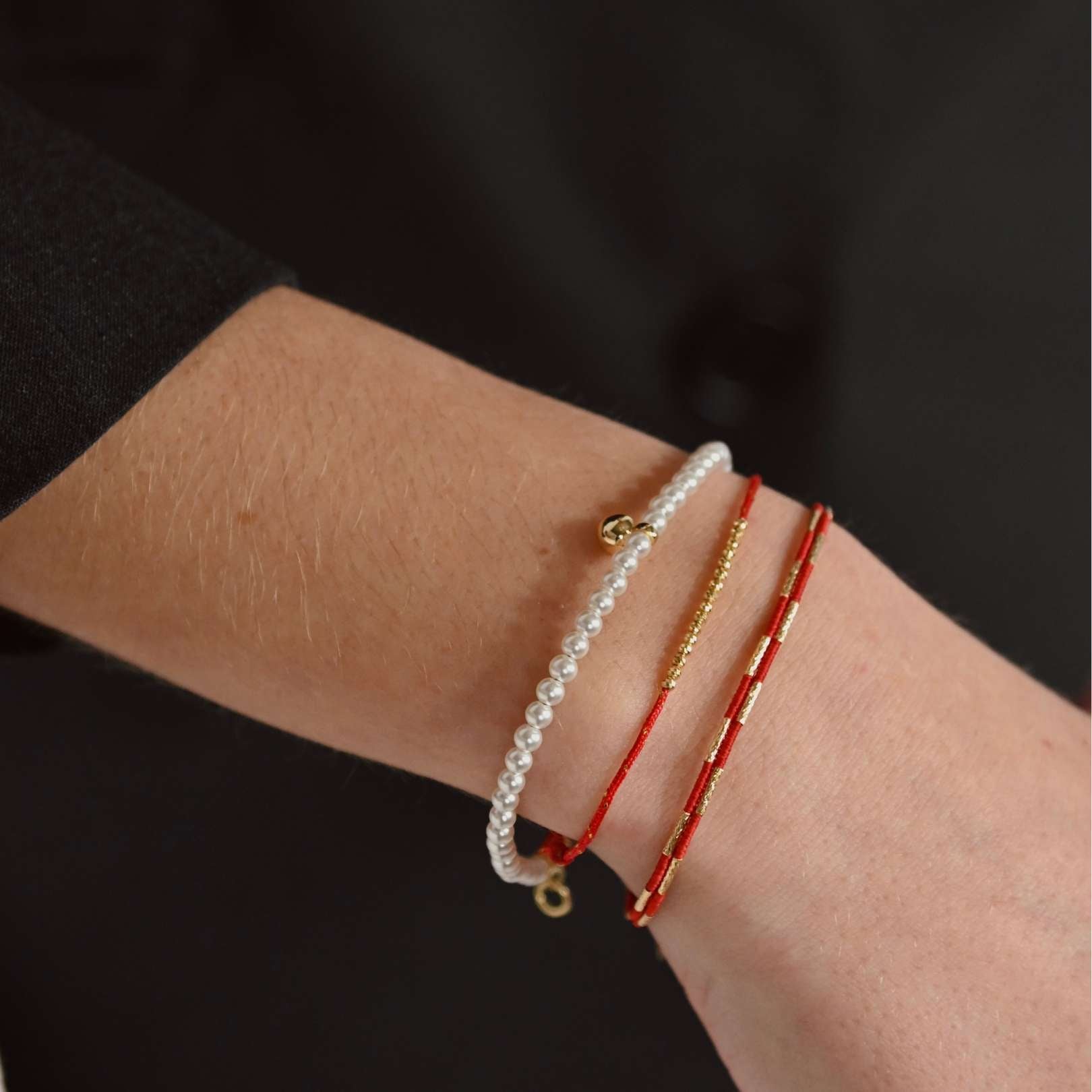 A perfect blend of tradition and modern elegance, each bracelet is a symbolic and stylish accessory. The vibrant red string is delicately threaded through sleek gold beads, creating a striking contrast that exudes both warmth and sophistication. Known for its association with protection, good fortune, and positive energy, this bracelet is a meaningful addition to your jewelry collection.