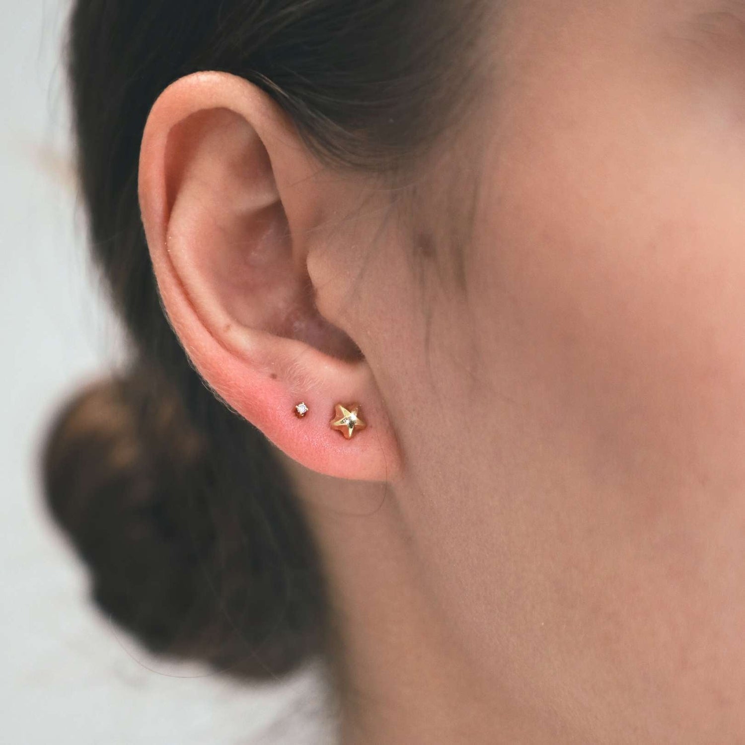 Brillez de jour comme de nuit avec ces puces d'oreilles Dainty Star. Avec leur design minimaliste en forme d'étoile, ces petites puces ajoutent une subtile touche céleste à toutes vos tenues. Légères et faciles à porter, elles sont parfaites en superposition ou seules pour une touche de charme en toute simplicité.